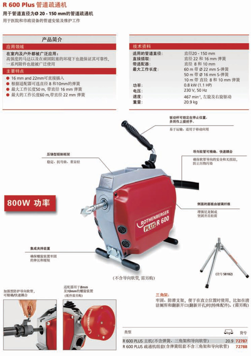 ●(用于管道直徑為 20-150 mm的管道疏通機,用于醫院和市政設備的管道安裝及維護工作 )